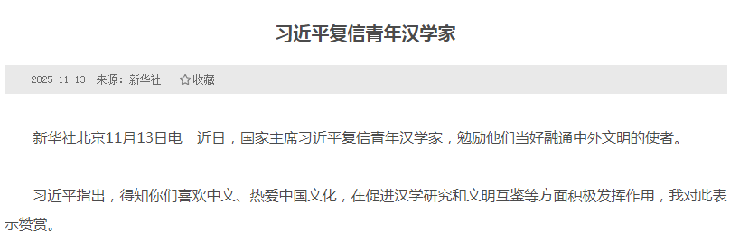 - 习近平复信青年汉学家2025-11-13